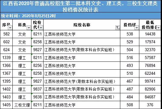 江西省2020年普通高校招生第二批本科文史、理工类,三校生文理类投档情况统计表