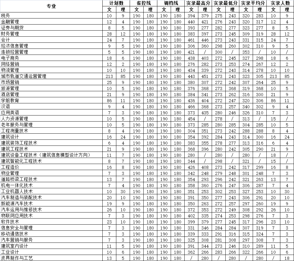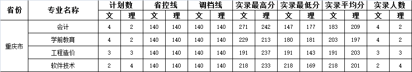 四川城市职业学院2017年普通类(省外)专科招生录取信息表