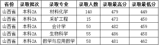 吕梁学院2020年本科2A理工专业录取情况统计表【山西省】
