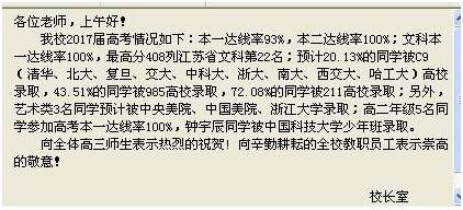 2017苏州星海实验中学录取分数线(附2017高考成绩喜报)