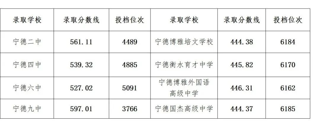 根据2025年宁德市高中阶段招生工作日程安排,我区已经完成普通高中各批次的录取工作,现将录取结果予以公告。