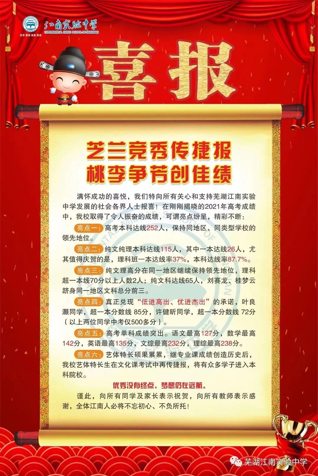 2021芜湖江南实验中学高考喜报成绩、一本二本上线人数情况