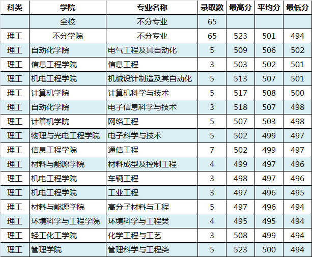 广东工业大学2017年高考山西省各专业录取分数线情况