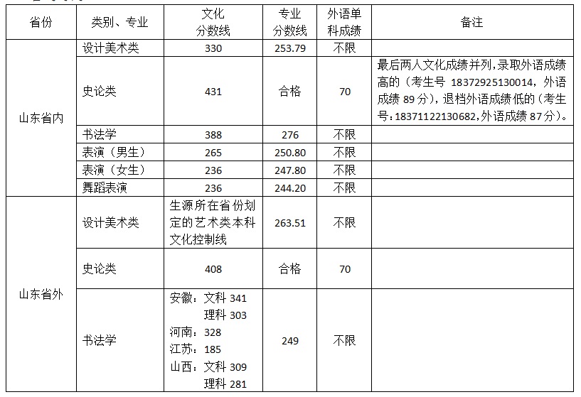 山东工艺美术学院2018年艺术类本科录取分数线情况