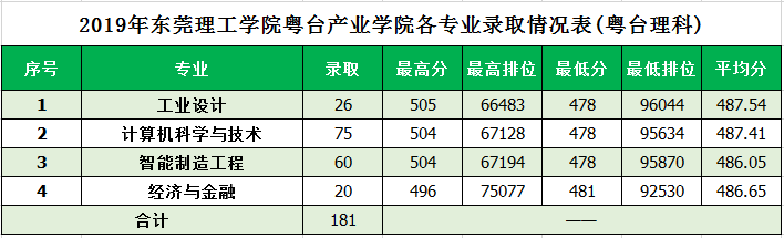 2019年东莞理工学院粤台产业科技学院(联合培养项目) 各专业录取分数表
