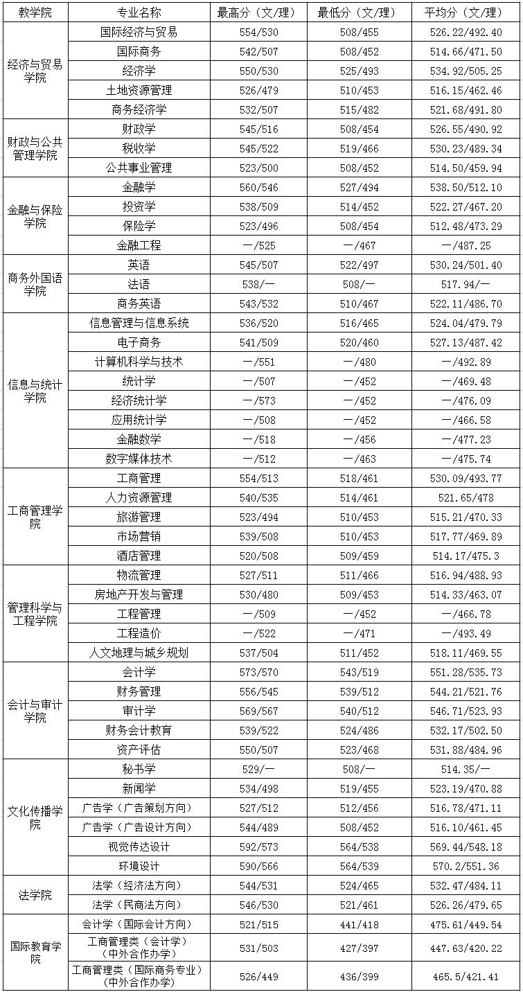 2018年广西财经学院本科各专业广西录取分数情况统计表