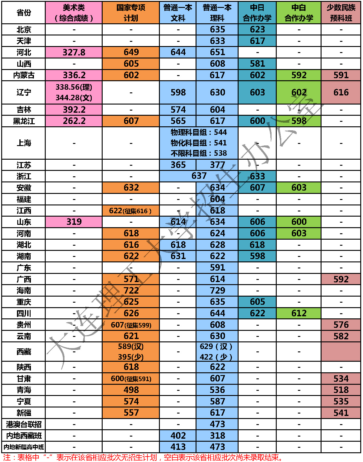 大连理工大学主校区(含开发区校区)2018年各省录取分数线