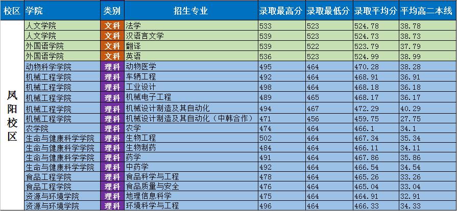 安徽科技学院2018年安徽省普通高考分专业录取分数线