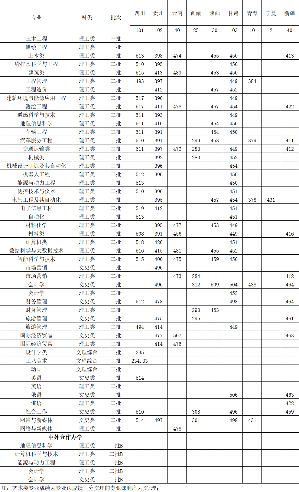 2019年黑龙江工程学院在各省各科类专业各批次录取分数线