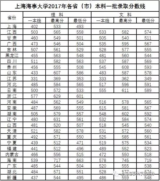 2017海事上海大学录取分数线【全国】