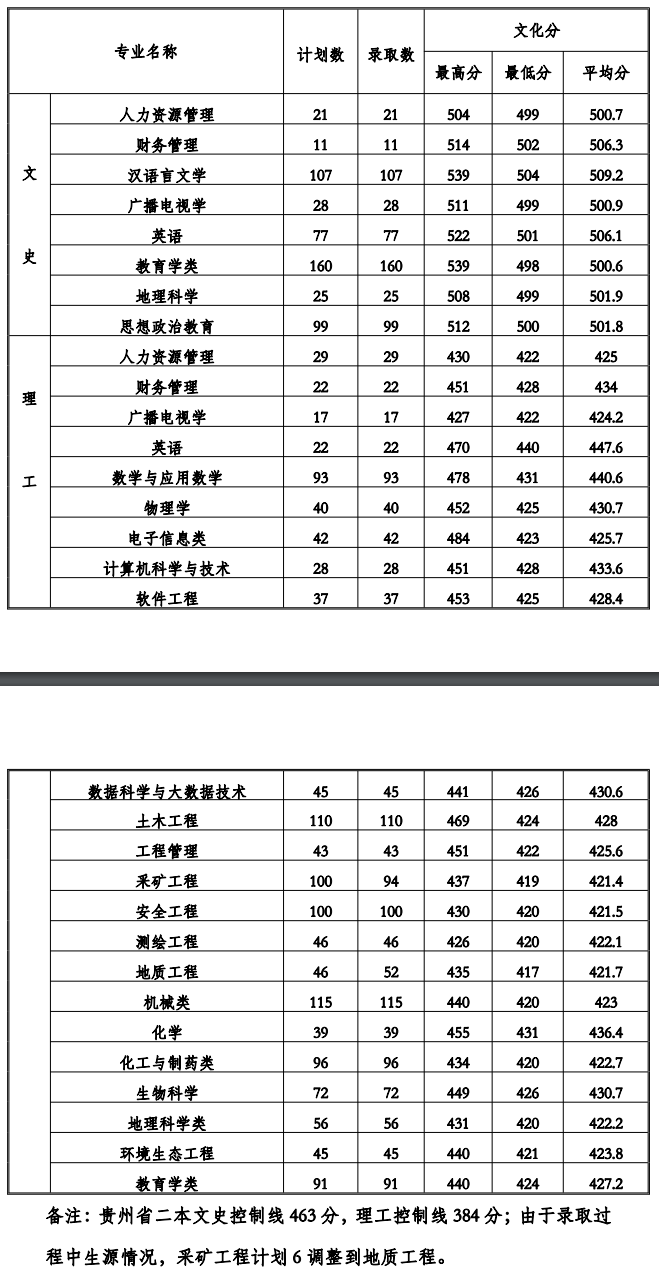 2020贵州工程应用技术学院录取分数线(本科、艺术体育、预科)