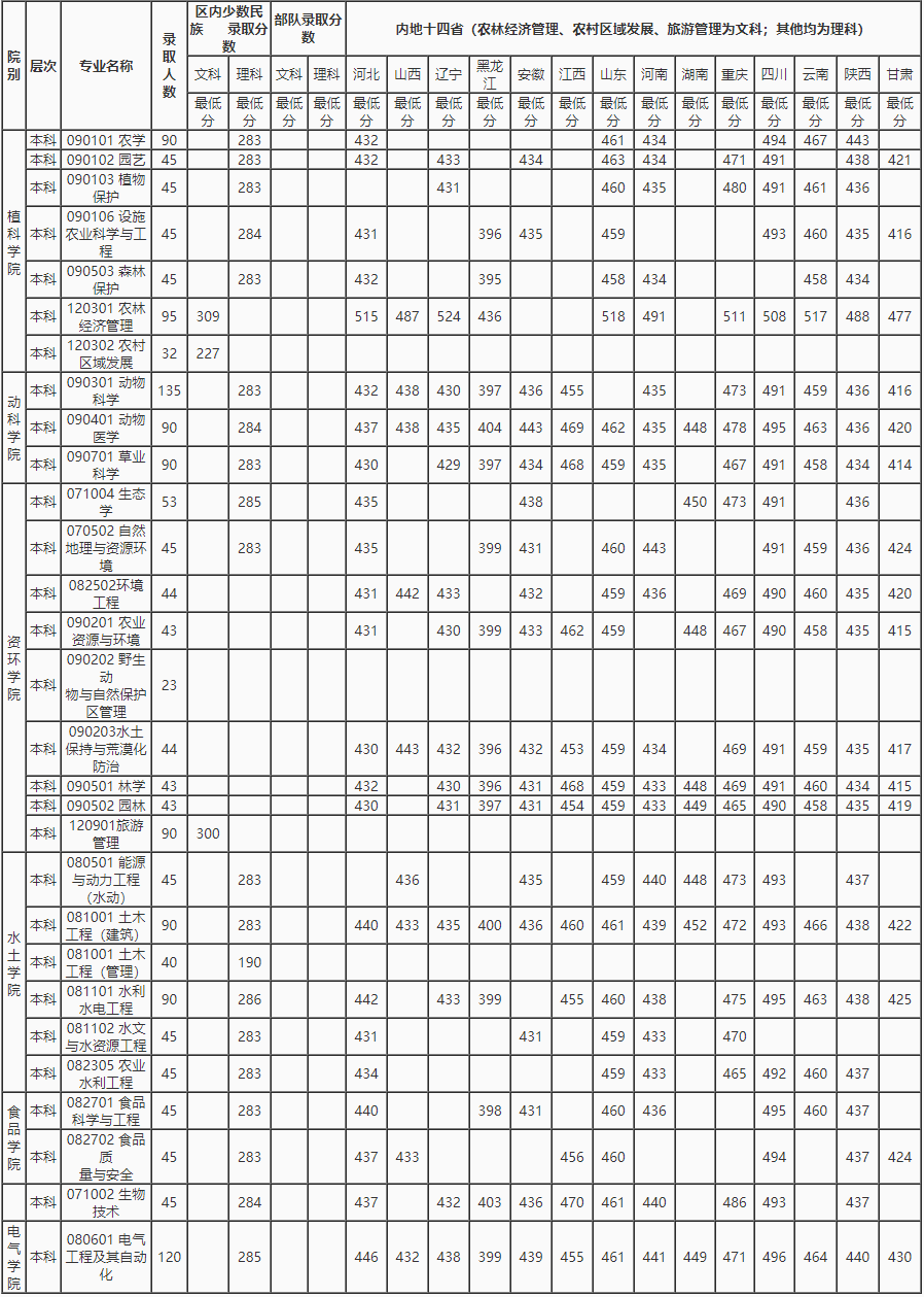 | 录取线 | 汉族 | 491 | 433 | |||||