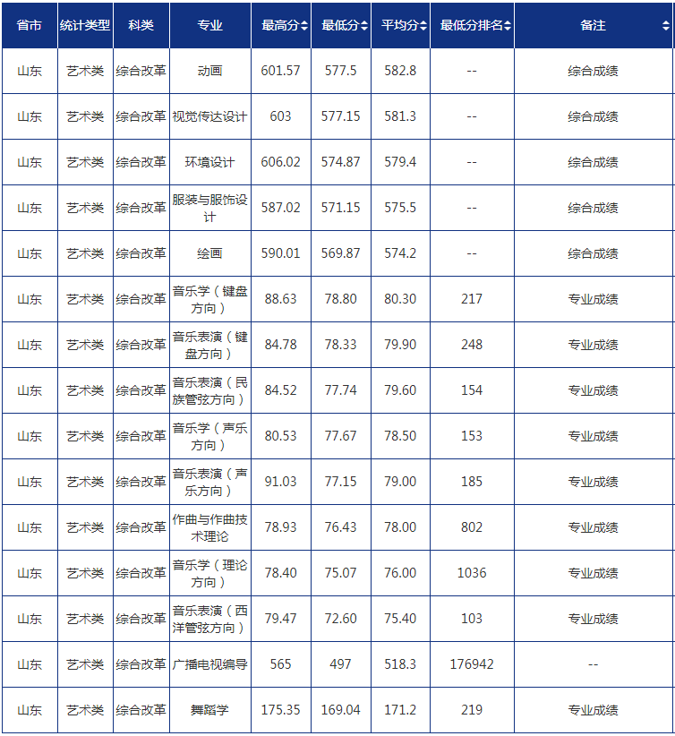 山东 艺术类 综合改革 606 569 577.7