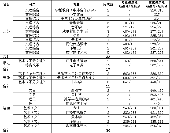 渭南师范学院2020年分省分专业录取最高最低分(外省部分)