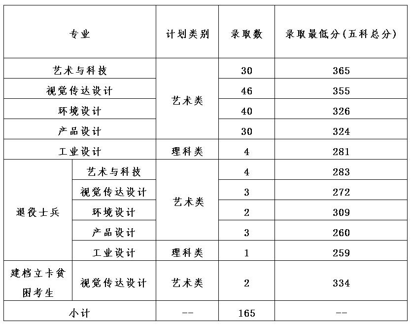 2、“统考+校考”设计类专业录取最低综合分70.593分;