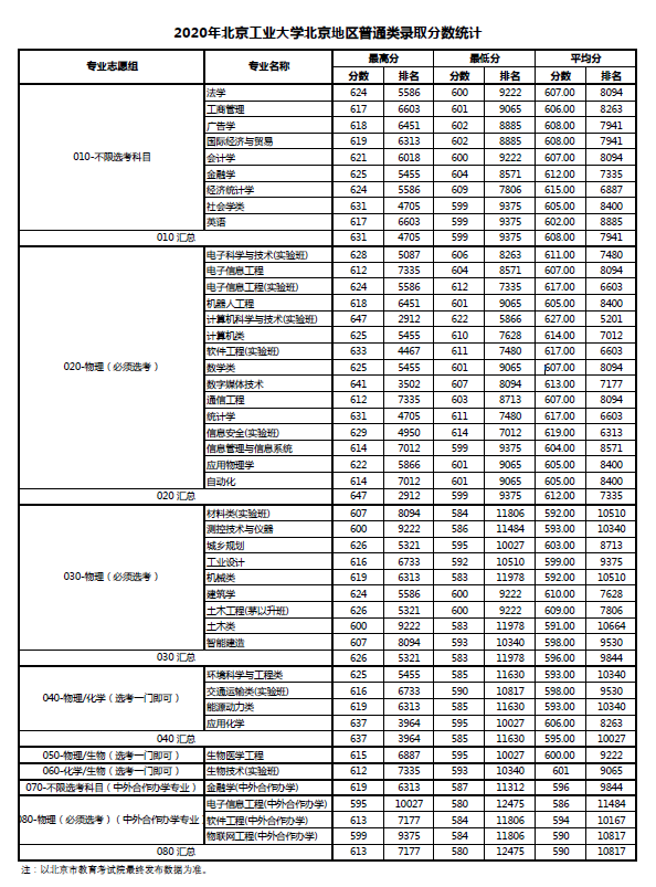 以下是为大家整理的2020北京工业大学录取分数线,包含普通类、国家专项和艺术类分数线,以及北京市各专业分数线,分为理科和文科,供大家参考: