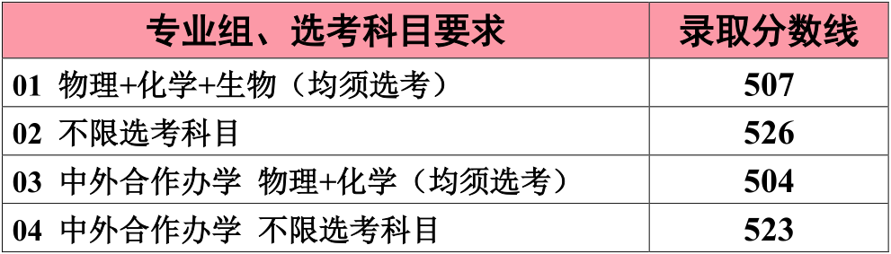 其中江苏省录取分数线文科375,理科379;中外合作办学文科359,理科361。
