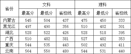 常州大学2020年各省本一(本科)批次招生录取分数线汇总表