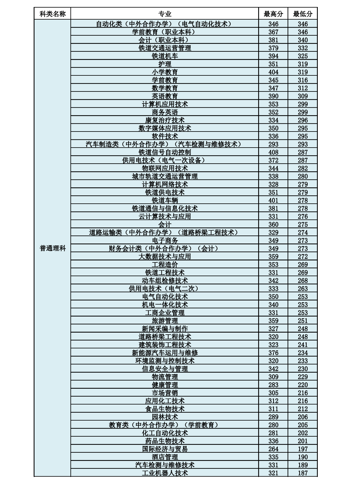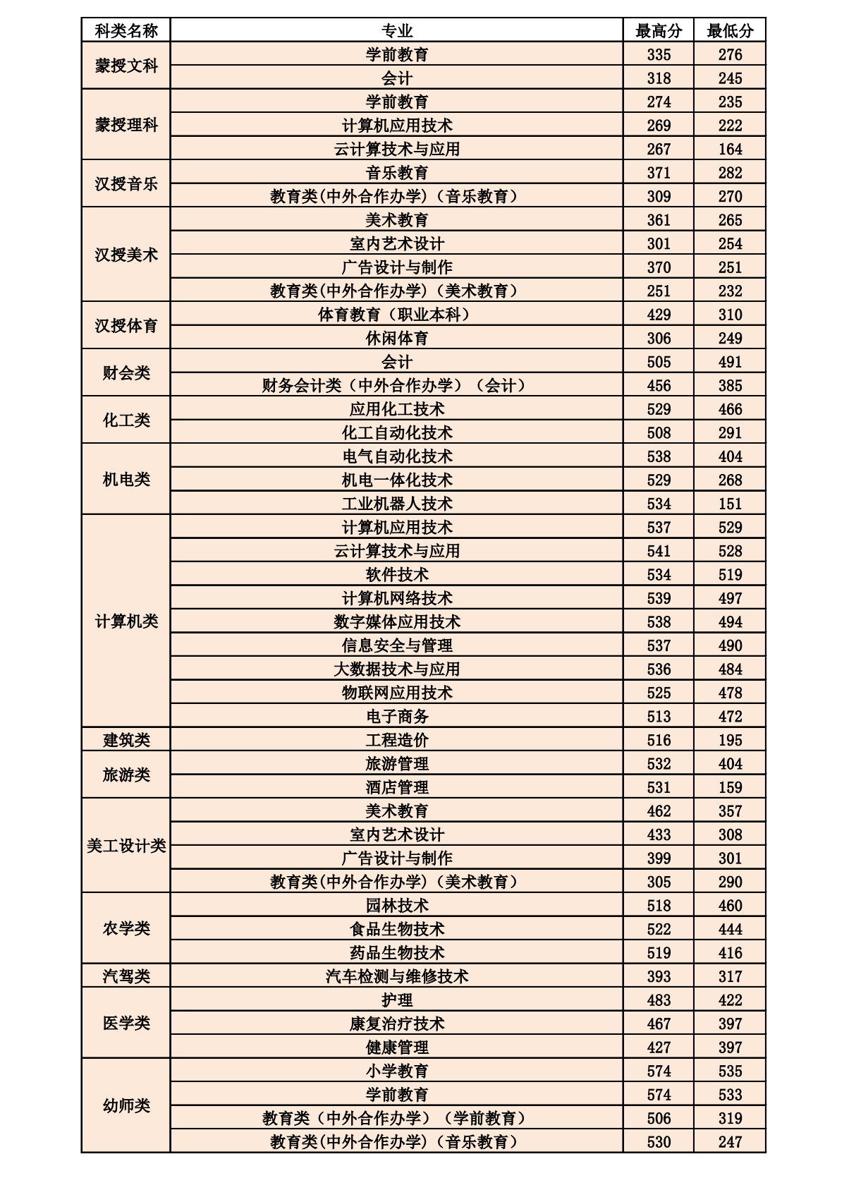 注:计算机类、农学类、财会类、美工设计类、旅游类、汽驾类、建筑类、机电类、化工类、幼师类的分数线供对口中职生参考。
