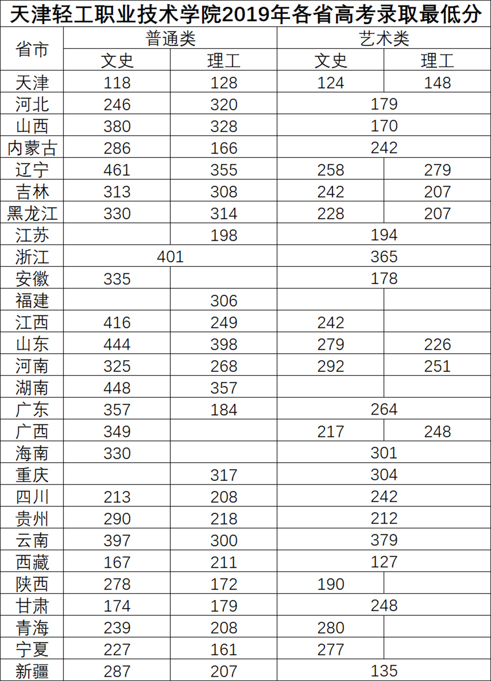 2019天津轻工职业技术学院分数线是多少以及最近三年历年录取分数线是广大考生和家长朋友们十分关心的问题,为了方便大家查询,小编已经为大家整理好了天津轻工职业技术学院2016-2019年录取分数线汇总信息,包含理科和文科,供大家参考: