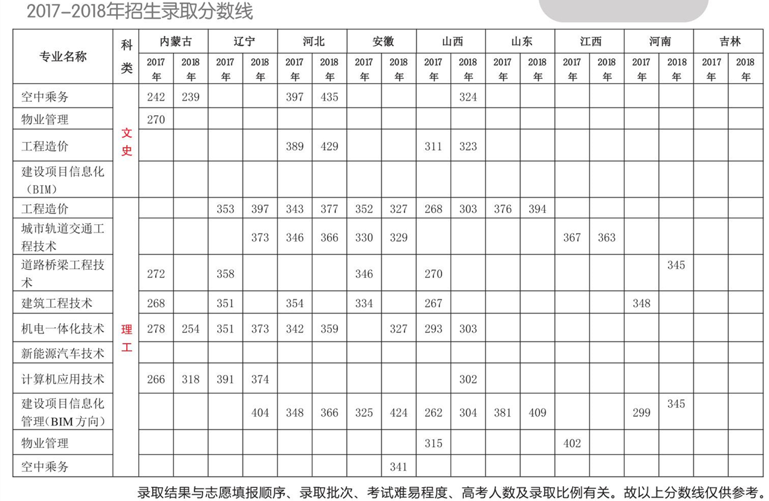 北京交通职业技术学院2017-2018录取分数线【全国】
