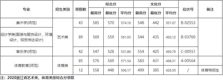 温州大学2020年艺术类、体育类各专业录取情况一览表(浙江省)
