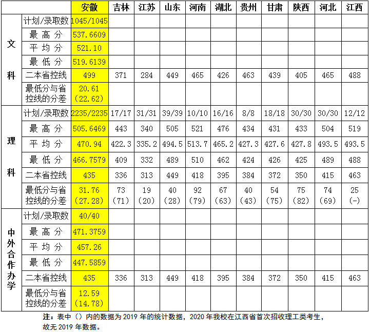 宿州学院2020年普招各省录取控制线