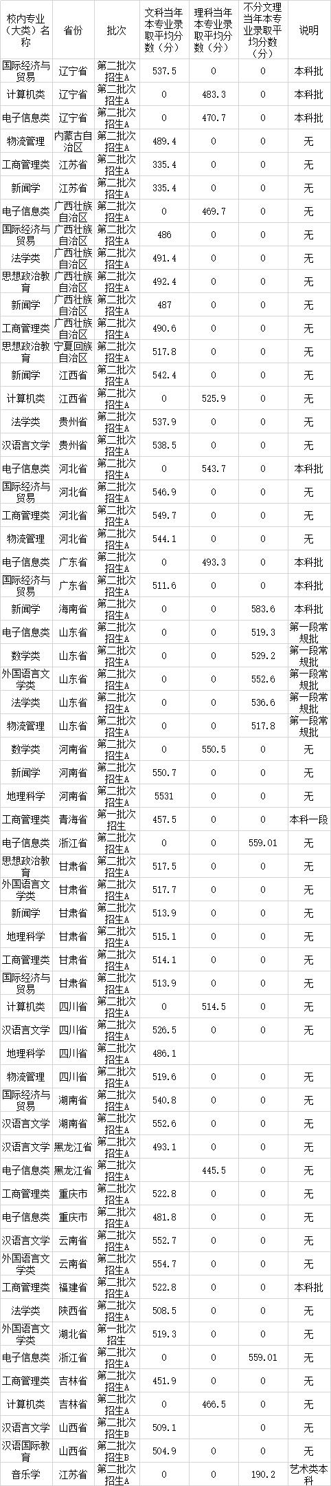 安庆师范大学2020年外省分专业招生录取分数线情况一览表