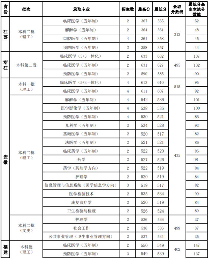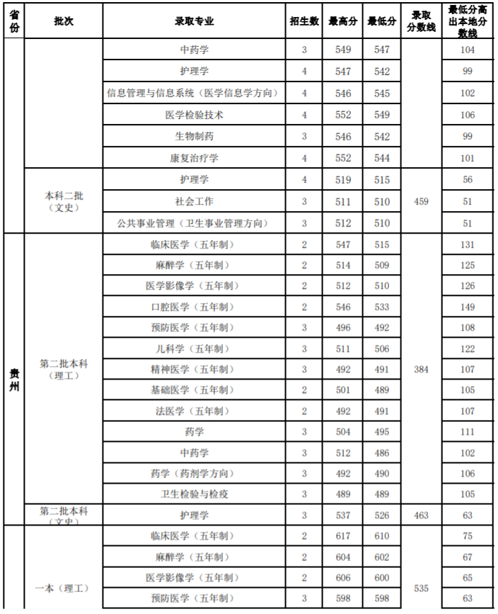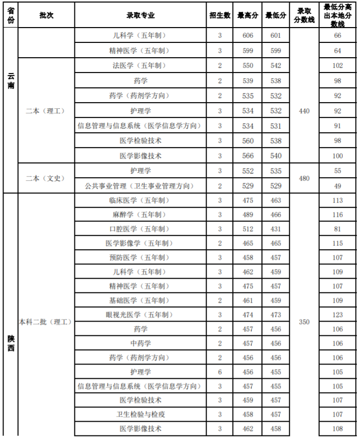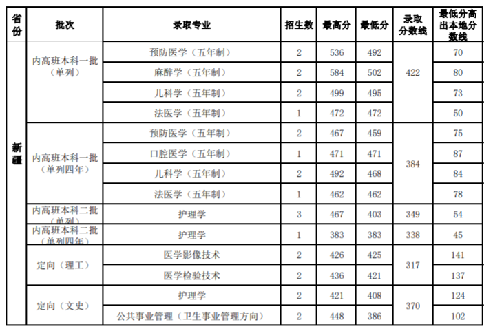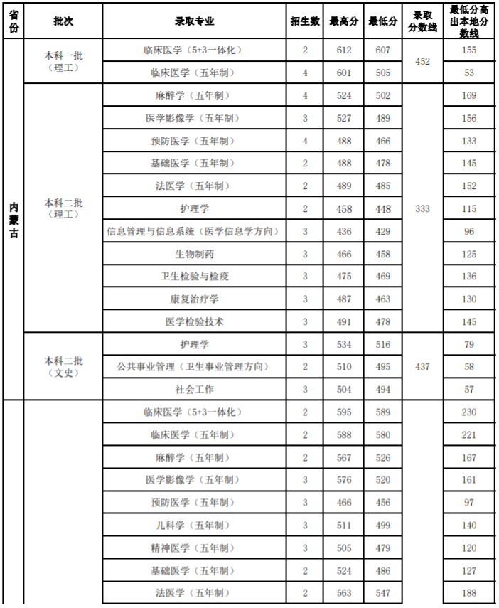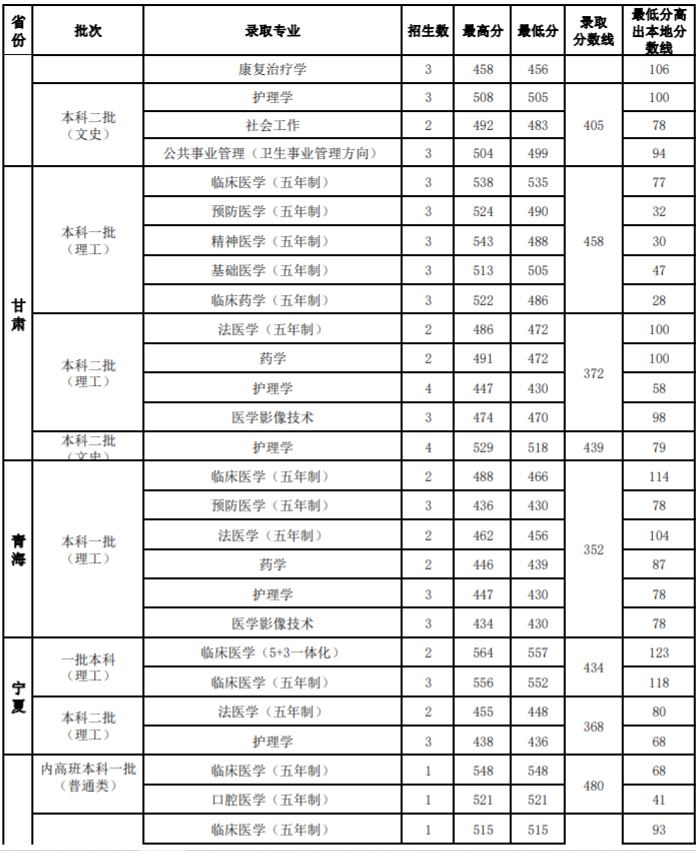 山西医科大学2020年本科分省市分专业录取情况汇总表