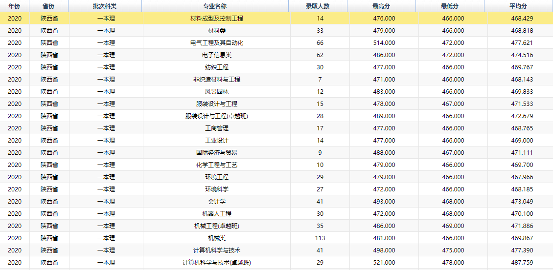 西安工程大学历年在【陕西省】录取人数及各专业录取详细信息