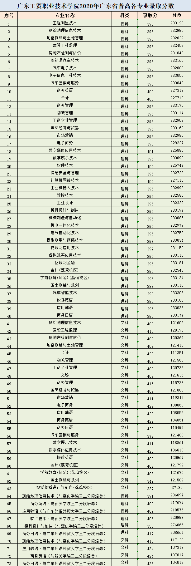 2020年广东工贸职业技术学院录取分数线【广东】