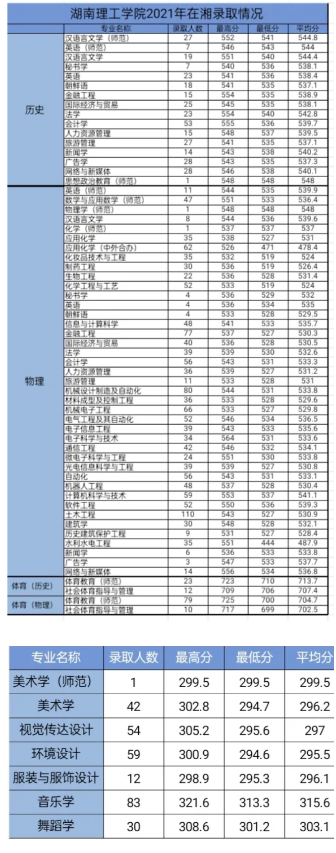 1、2021湖南理工学院各专业录取分数线【湖南】