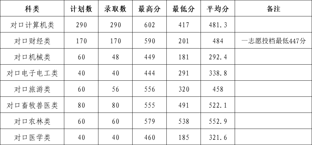 河北省专科批一志愿录取情况统计