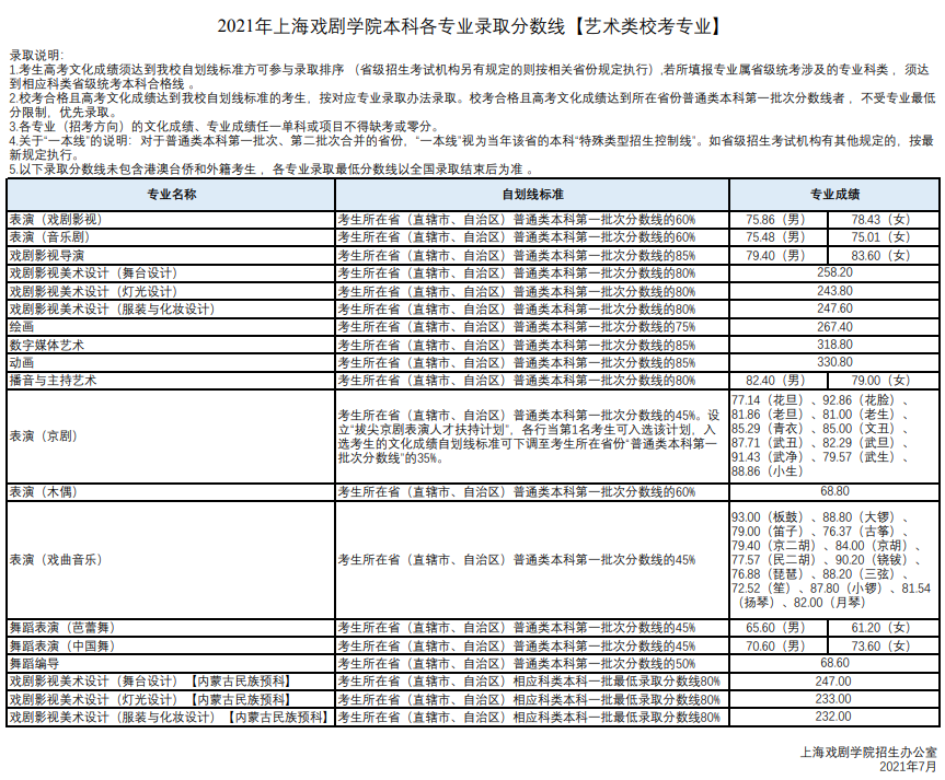 2021上海戏剧学院录取分数线以及最近三年历年分数线是2022届考生和家长朋友们十分关心的数据,为了方便大家查询,本站小编已经为大家整理好了2017-2021年录取分数线一览表,以下是详细内容,供大家参考,正式填报时需要与学校官网数据进行核对,确保无误: