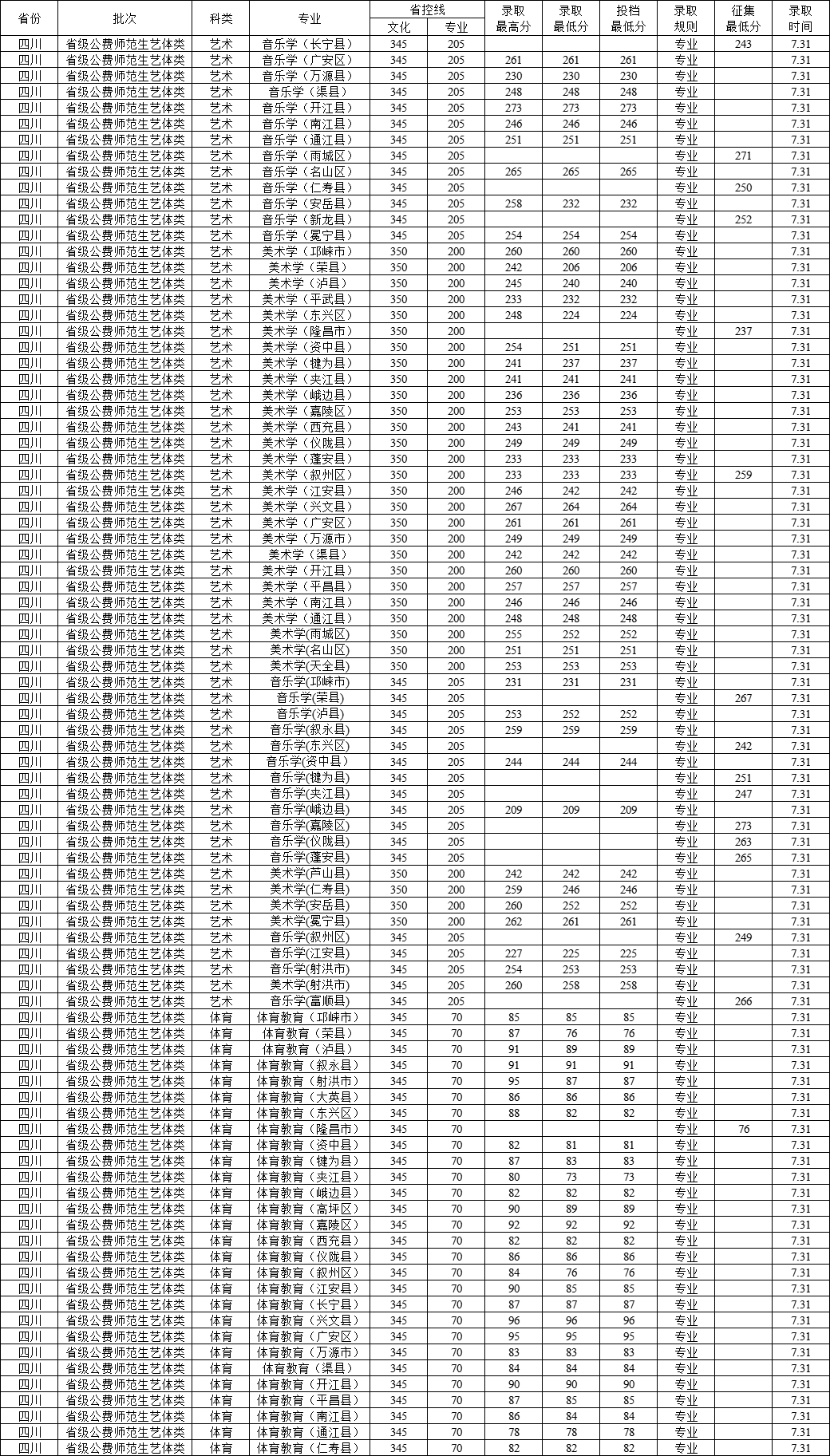 西华师范大学2021年各专业录取分数线(四川)