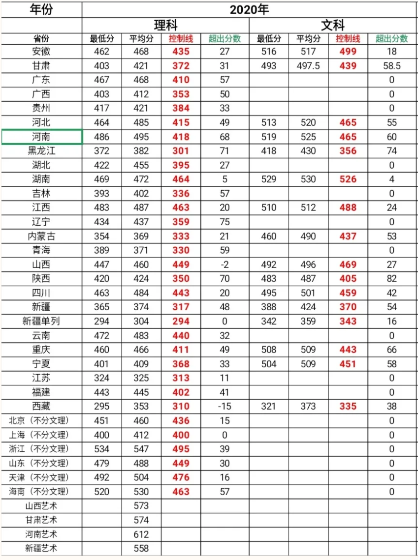 2020 历史学 文科 本科二批 370 422 8062