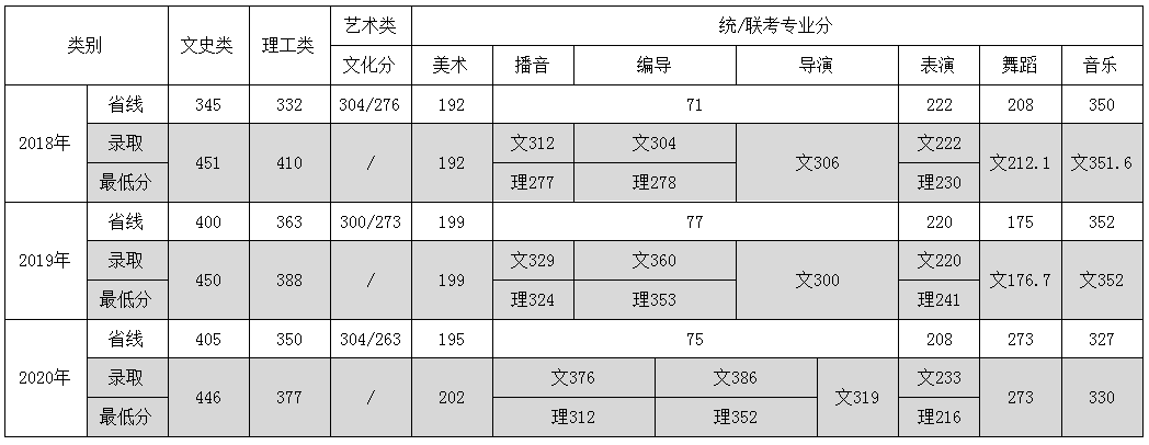我校在省内招生近三年的分数线(仅供陕西考生参考)