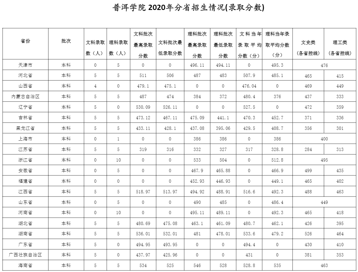 普洱学院2020年录取分数线是填报志愿时非常重要的参考依据,以下是普通类、艺术类等分数线,以及各专业分数线,分为理科和文科,供大家参考,正式填报时需要与学校官网数据进行核对,确保无误:
