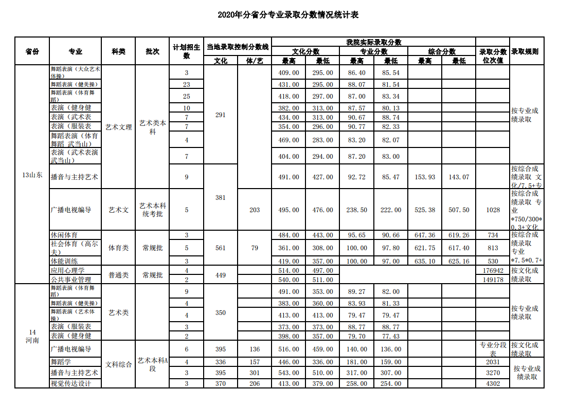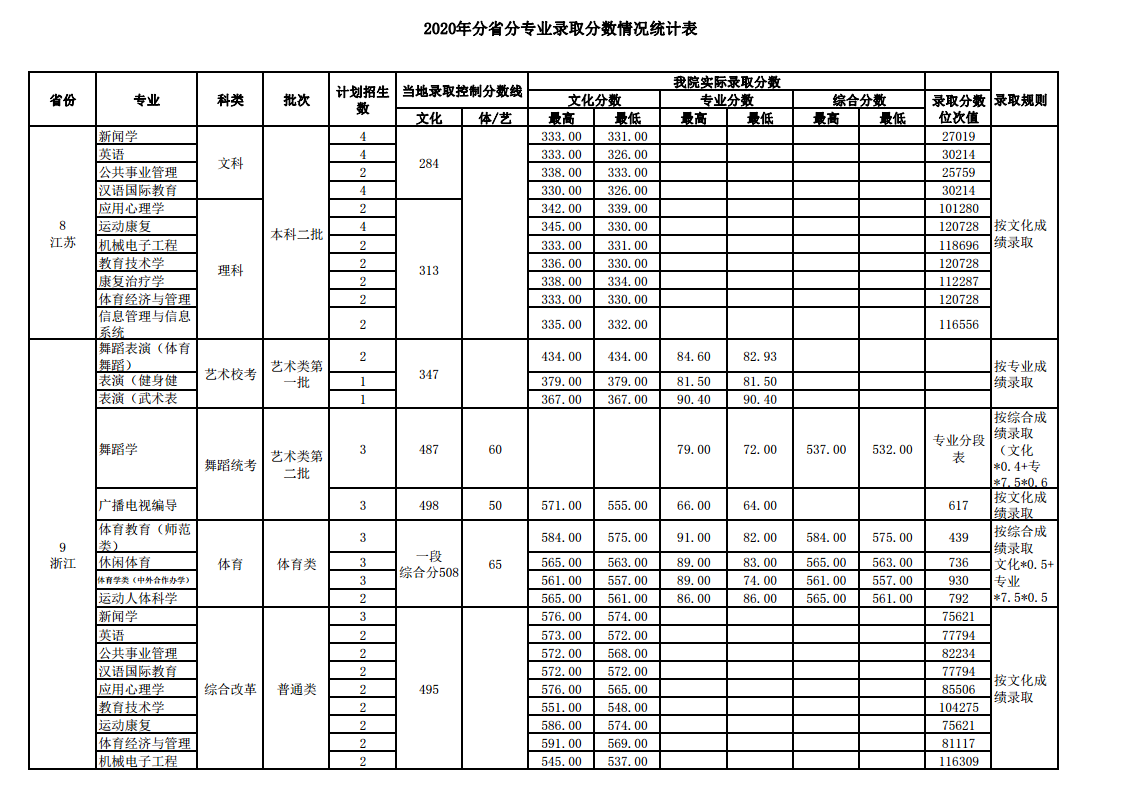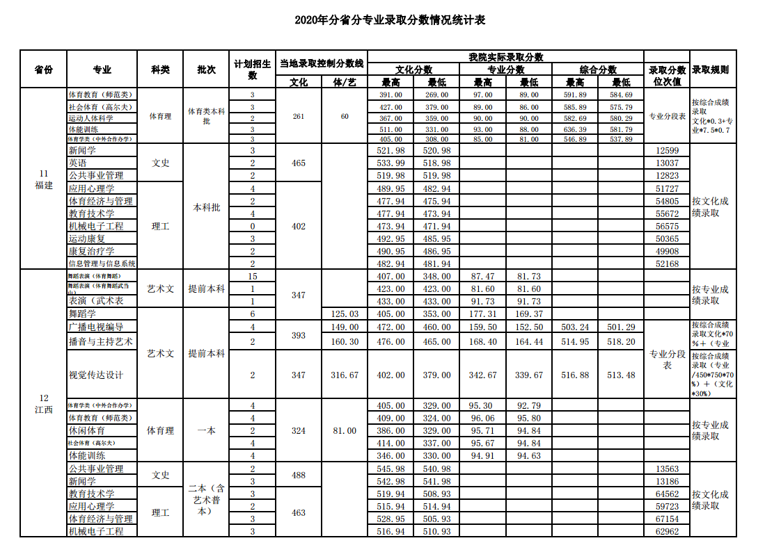 2020武汉体育学院录取分数线