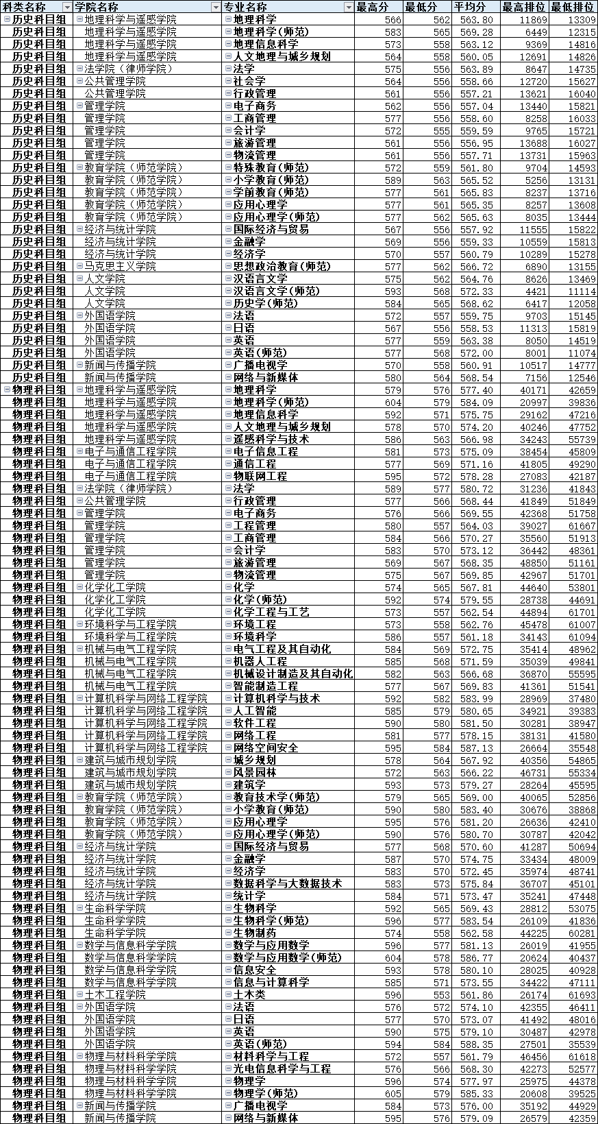 学院名称 专业名称 专业组名称 最高分 最低分 平均分 最高排位 最低排位