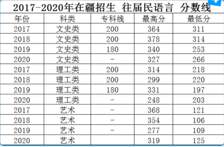 3、2017-2020新疆应用职业技术学院录取分数线【往届民语言类】