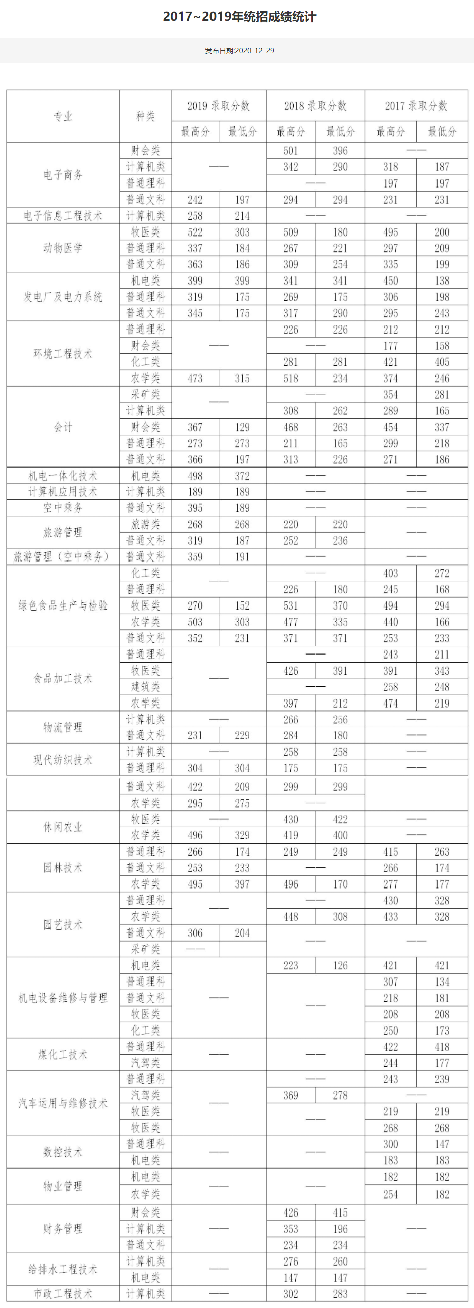 1、2017-2019年鄂尔多斯生态环境职业学院录取分数线【全国】