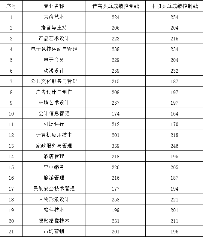四川文化传媒职业学院2021年单独招生分专业最低控分线通知