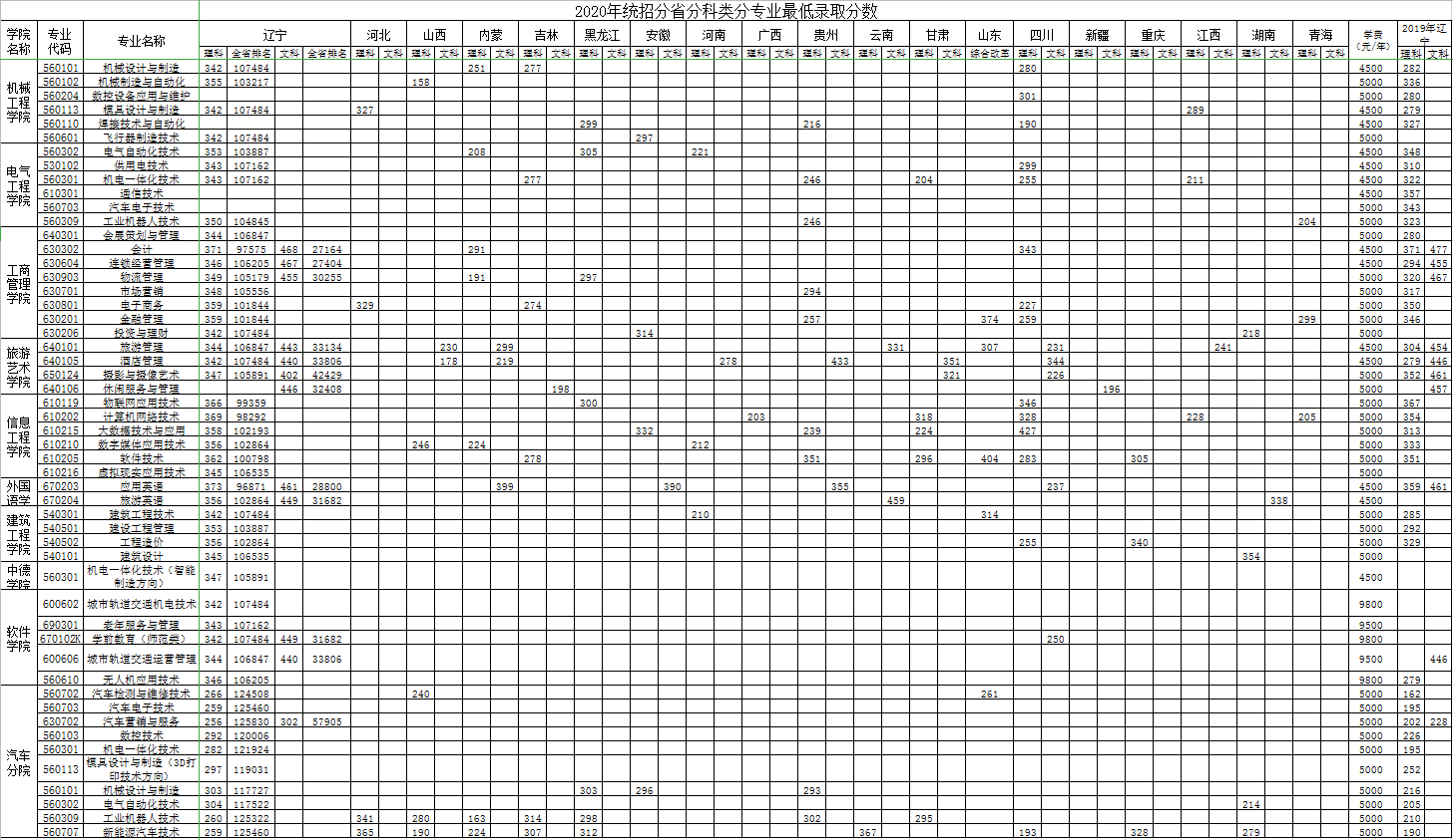2020沈阳职业技术学院录取分数线【全国】