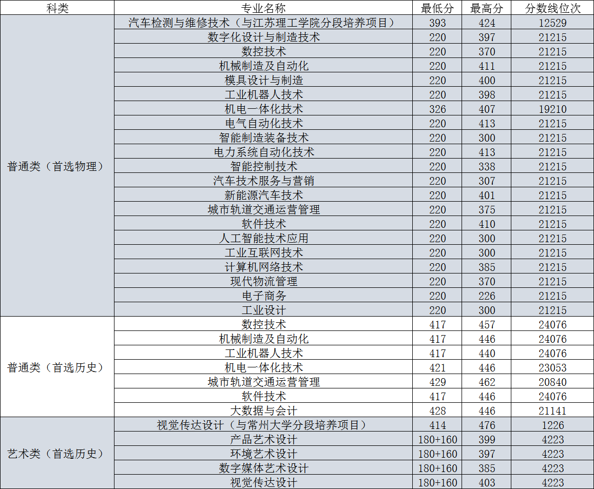1、2021年常州机电职业技术学院录取分数线【全国】