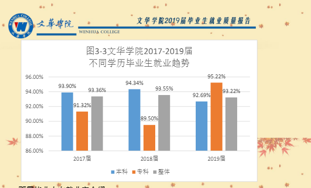 文华学院本科就业率为92.69%,专科就业率为95.22%。
