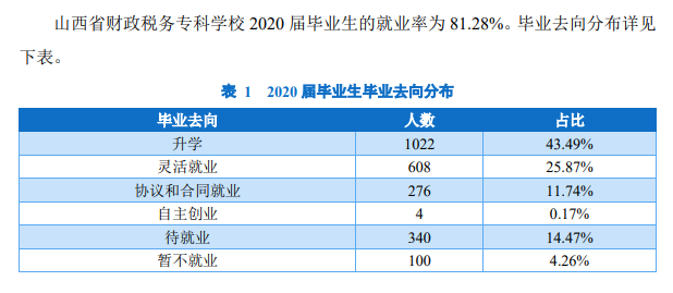 山西省财政税务专科学校2020年毕业生就业质量年度报告:https://www.sxftc.edu.cn/jycyw/info/1008/1590.htm