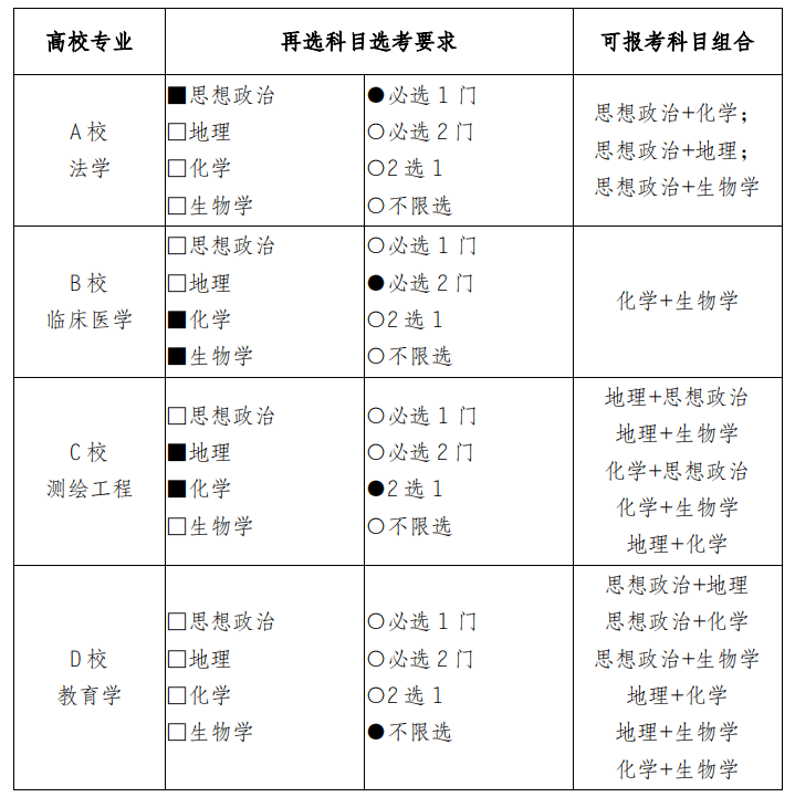 高校招生专业(类)对再选科目要求有几种?