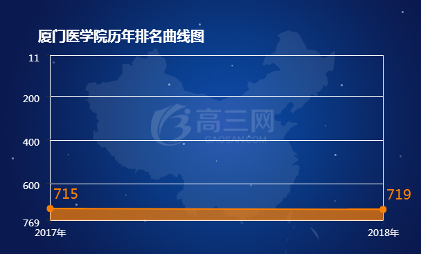 [1]在中国高校700强中,厦门医学院排名第719名,相对于2017年排名上升了4名。