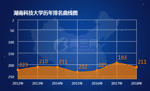 [1]在中国高校700强中,湖南科技大学排名第211名,相对于2017年排名下降了18名。